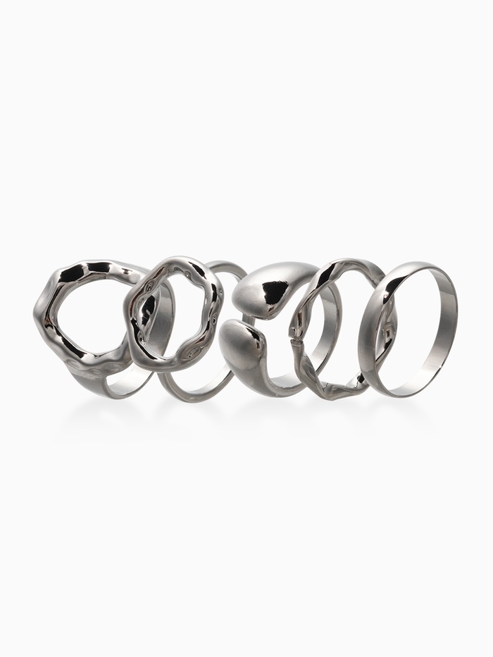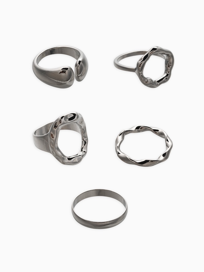 Набор колец 5 шт "Новый стиль" мятый, размер МИКС, цвет серебро