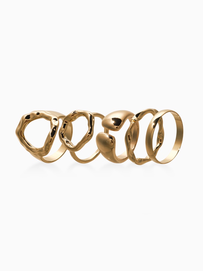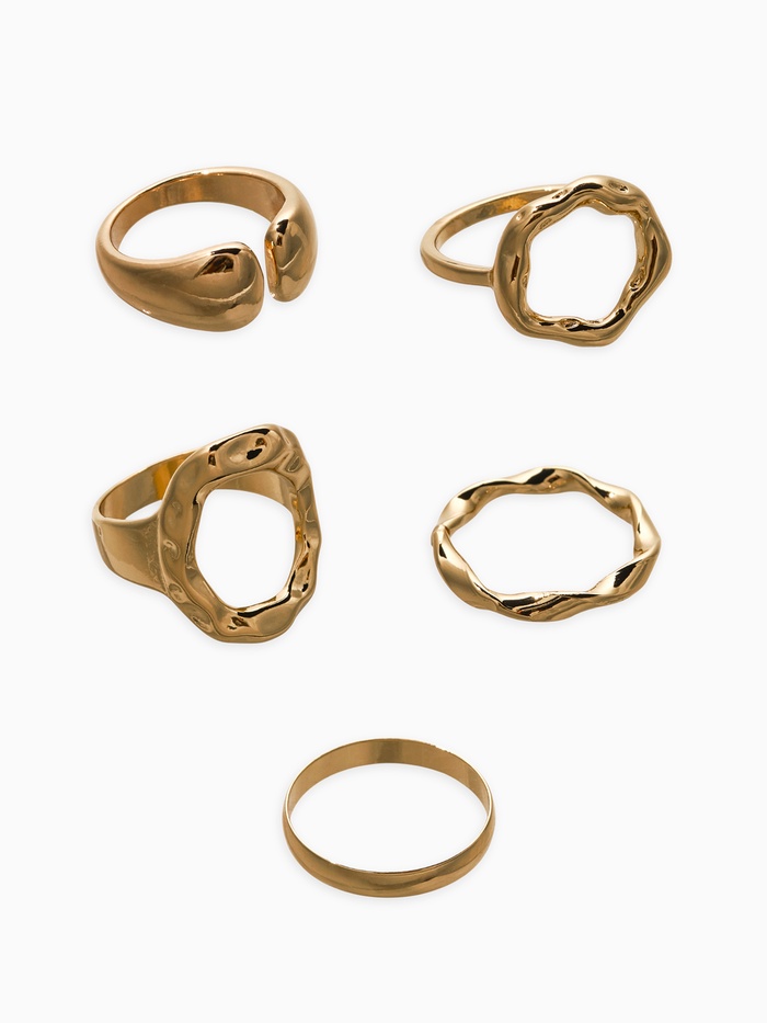 Набор колец 5 шт "Новый стиль" мятый, размер МИКС, цвет золото