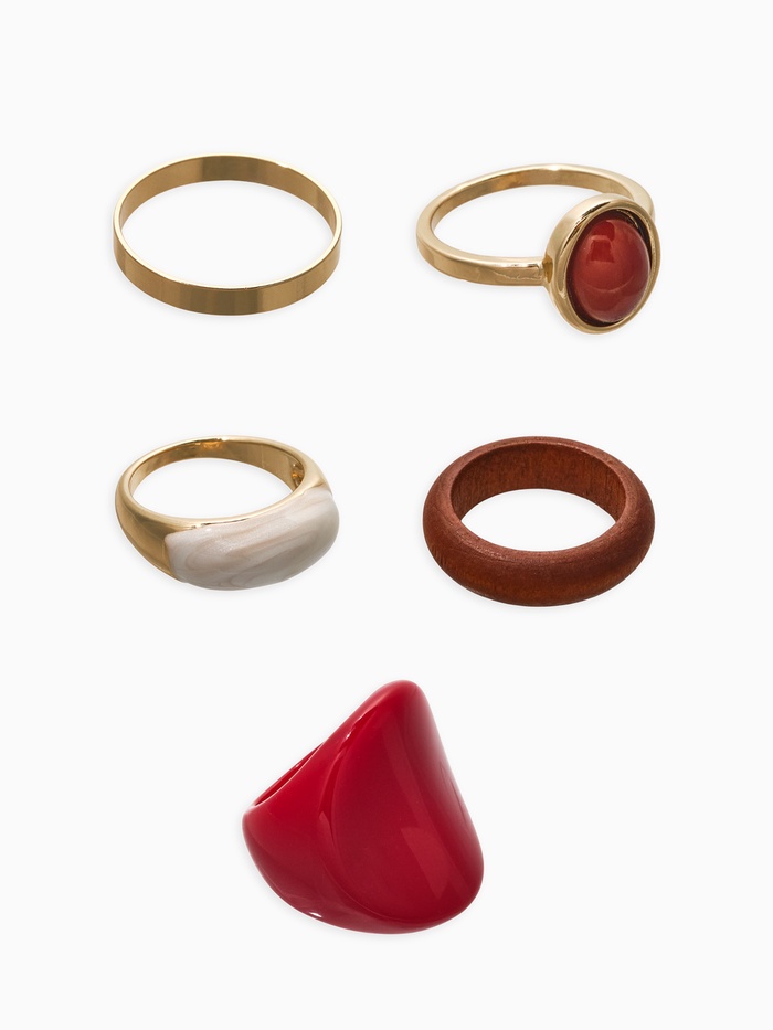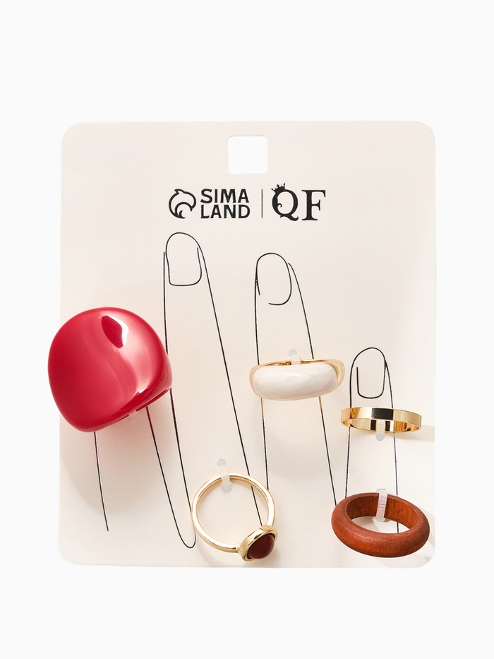 Набор колец 5 шт "Новый стиль" овал с деревом, размер МИКС, цвет красно-белый в золоте