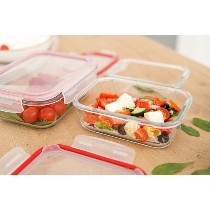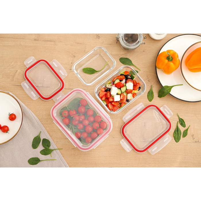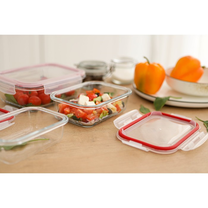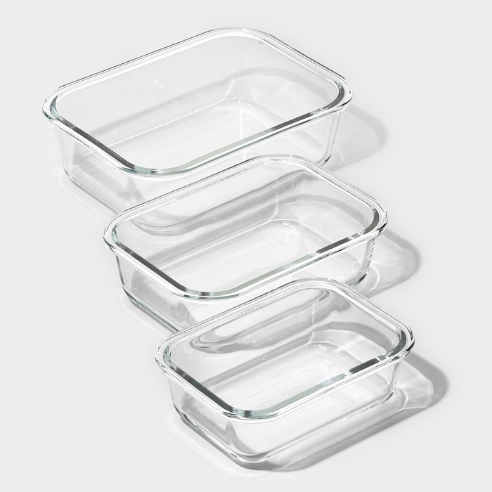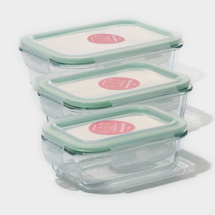 Набор контейнеров из жаропрочного стекла Доляна «Клик», 1,04/0,62/0,38 л, с крышкой, цвет МИКС