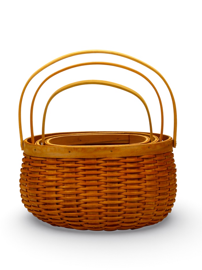 - Ручка как элемент формы: с учётом ручки общая высота корзин составляет: 28, 31 и 33 см. Ручка формирует завершённый силуэт, характерный для традиционных плетёных изделий.