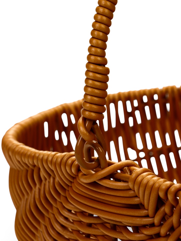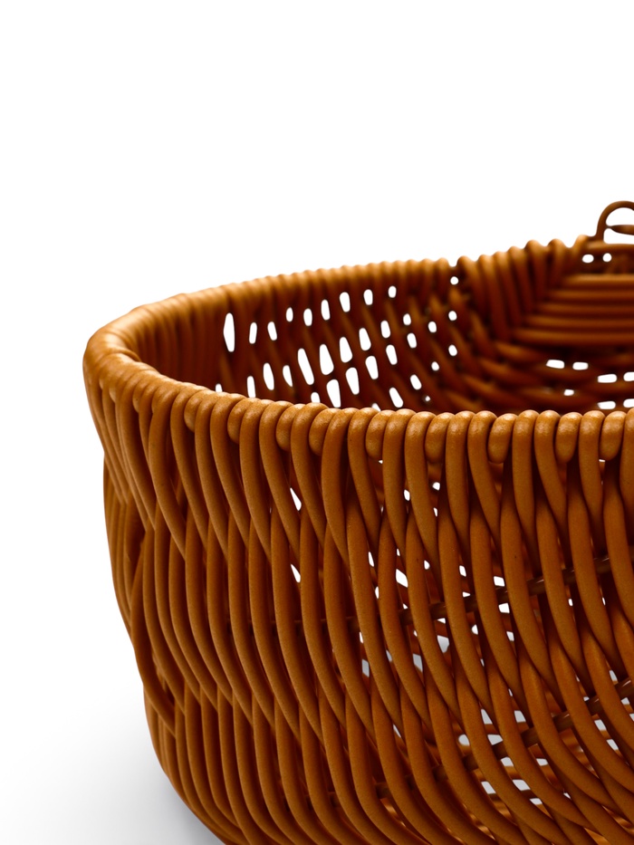 - Пластик с текстурой плетения: материал имитирует фактуру натуральной лозы, сохраняя лёгкость и простоту в уходе. Корзины устойчивы к влаге и не требуют специального обслуживания.