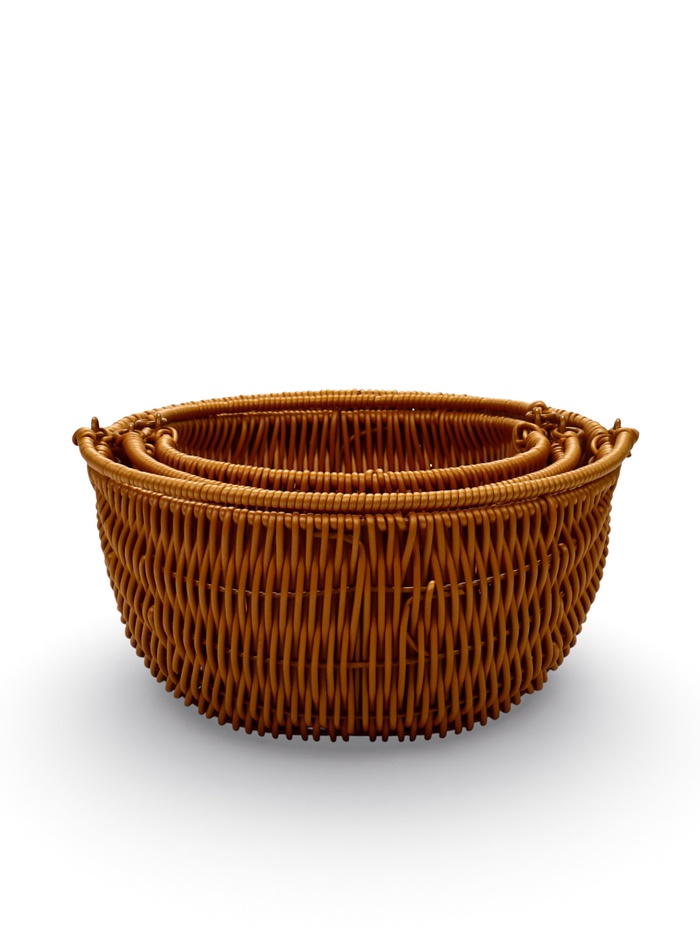 Набор плетёных пластиковых корзин «Jal» — это комплект из трёх корзин для многоуровневой организации пространства. Их каскадный размер и единый дизайн создают систему хранения, которая работает как цельный декоративный элемент.