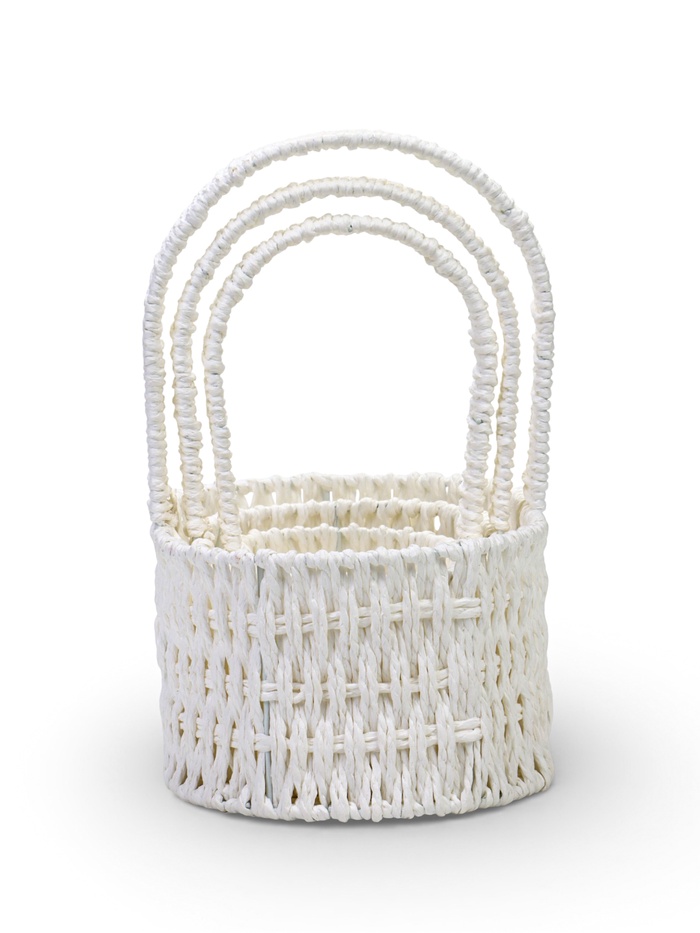 Корзина плетёная для хранения Kos, с ручкой, пластиковая, белая, набор 3 шт., Greengo