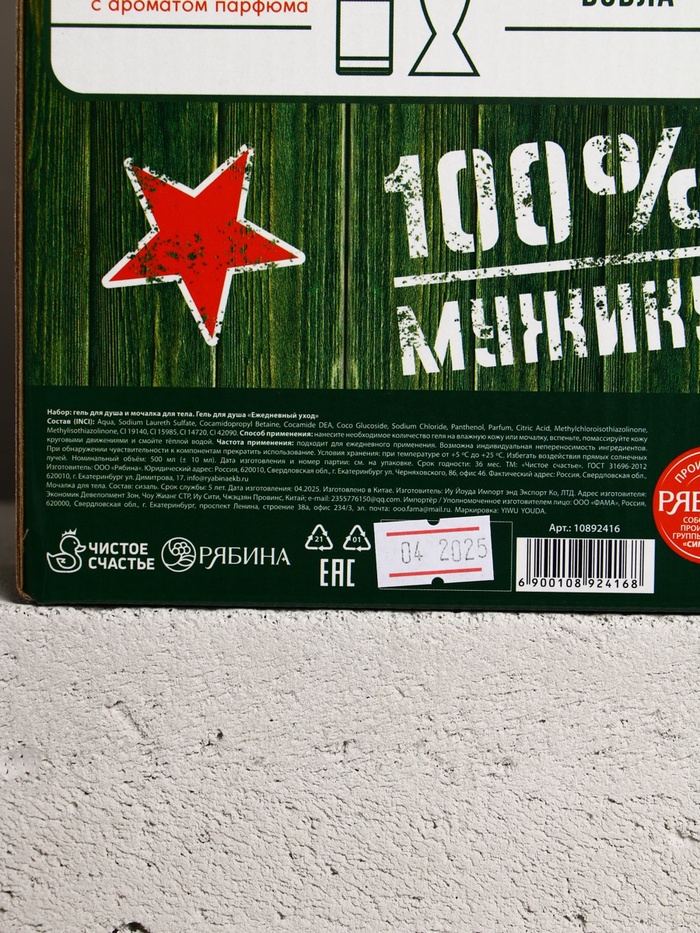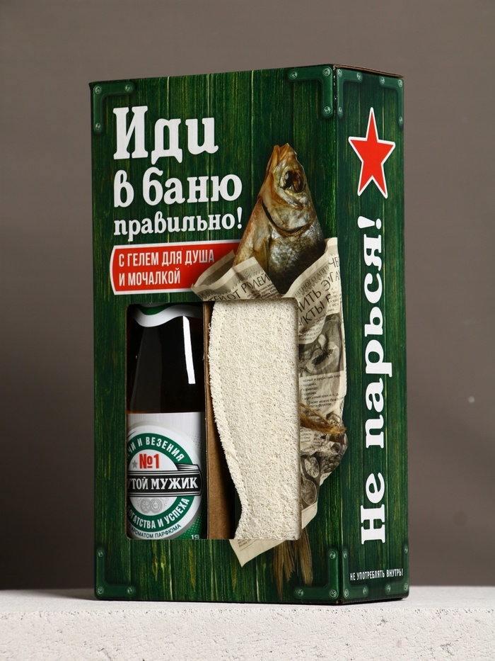 Технические характеристики Подарочный набор «Крепкому мужику», гель для душа во флаконе пиво, 500 мл и мочалка вобла, Чистое счастье
