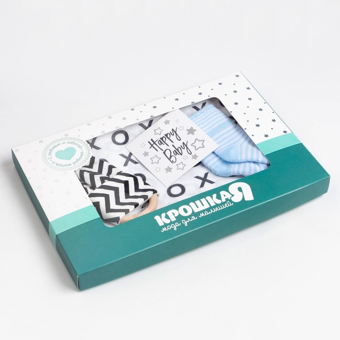 Набор Крошка Я «Classic», пелёнка муслиновая 75×120 см, носки 8-10 см, аксессуар
