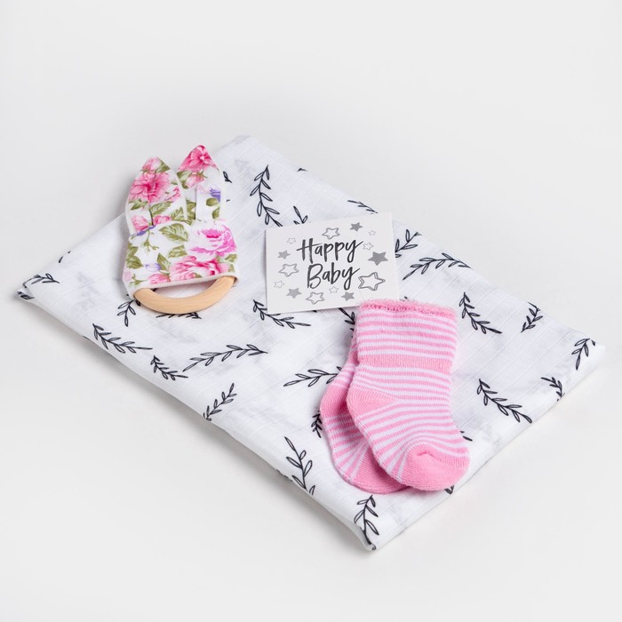 Набор Крошка Я "Flowers" Пелёнка муслиновая 75х120см, носки 8-10см, аксессуар