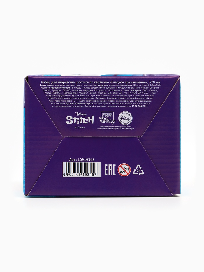 Технические характеристики Набор для творчества: кружка под раскраску «Сладкое приключение», Стич