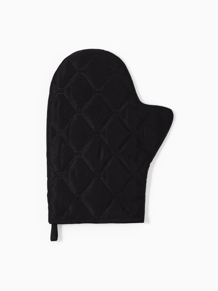 - Плотная структура материала надёжно защищает ладони от высокой температуры и брызг масла.