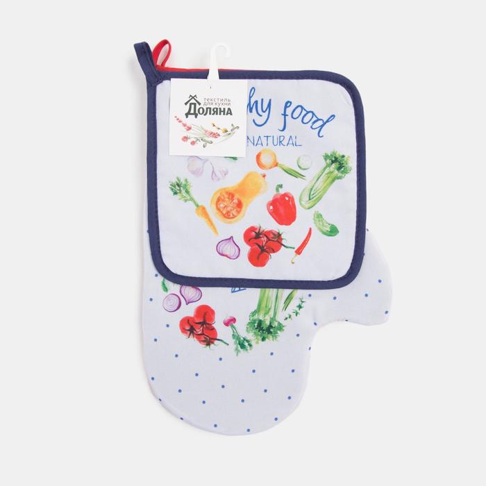 Набор кухонный «Натур продукт»: варежка-прихватка 20×28 см, прихватка 17×17 см, 35% х/л, 65% п/э