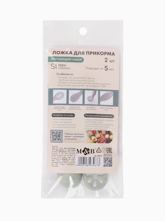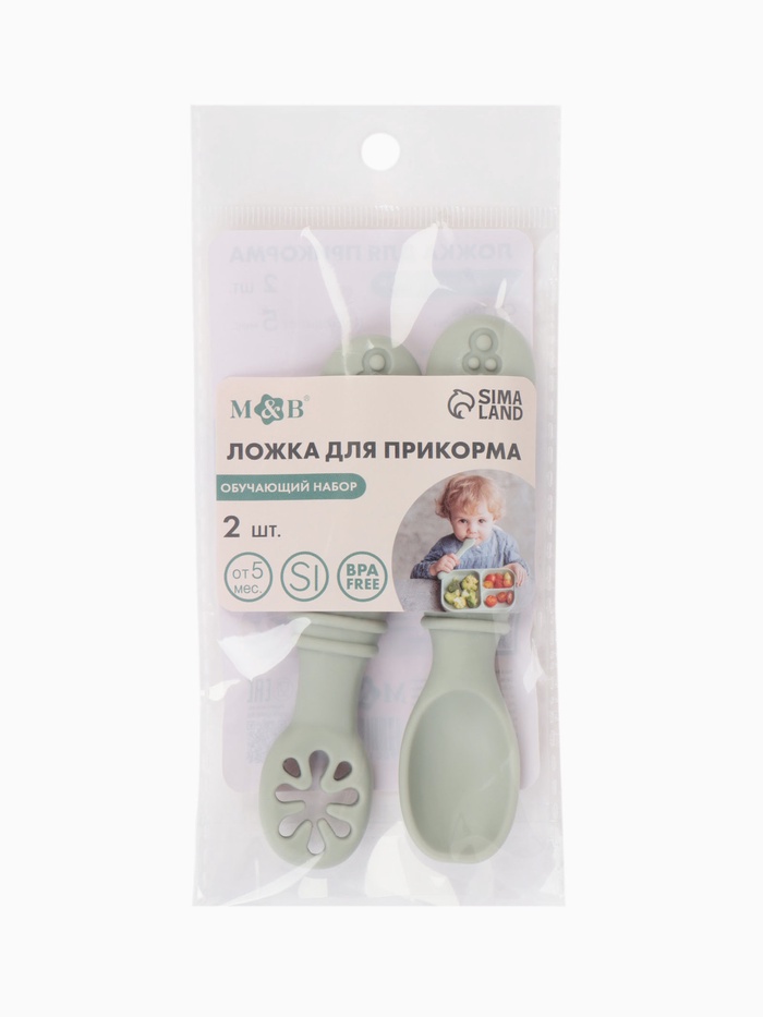 Технические характеристики Ложка детская для прикорма, силикон, набор 2 шт., серый M&B
