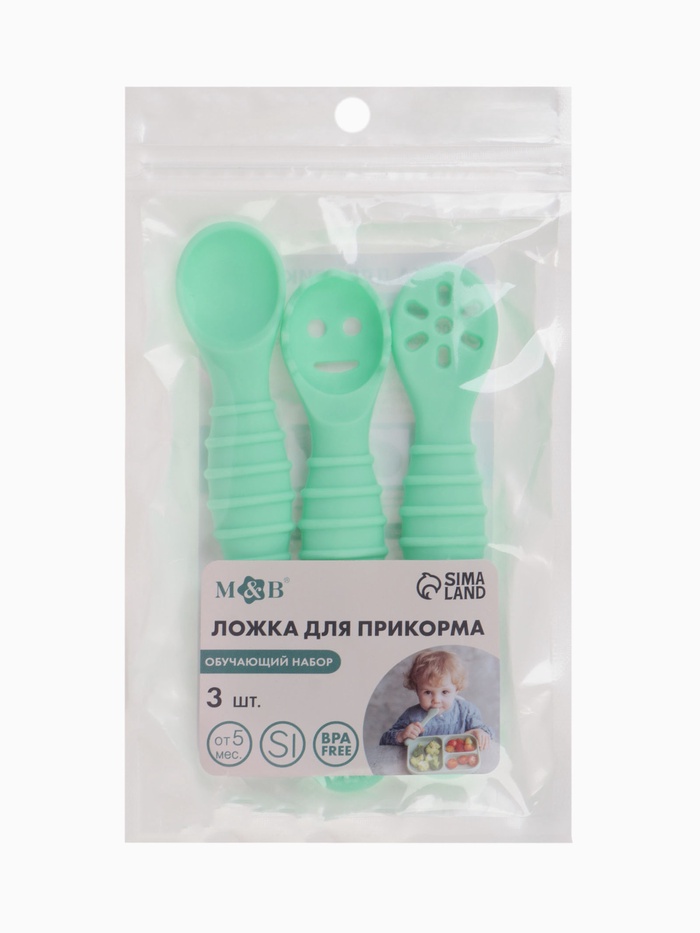 Ложка детская для прикорма, силикон, набор 3 шт., мятный M&B