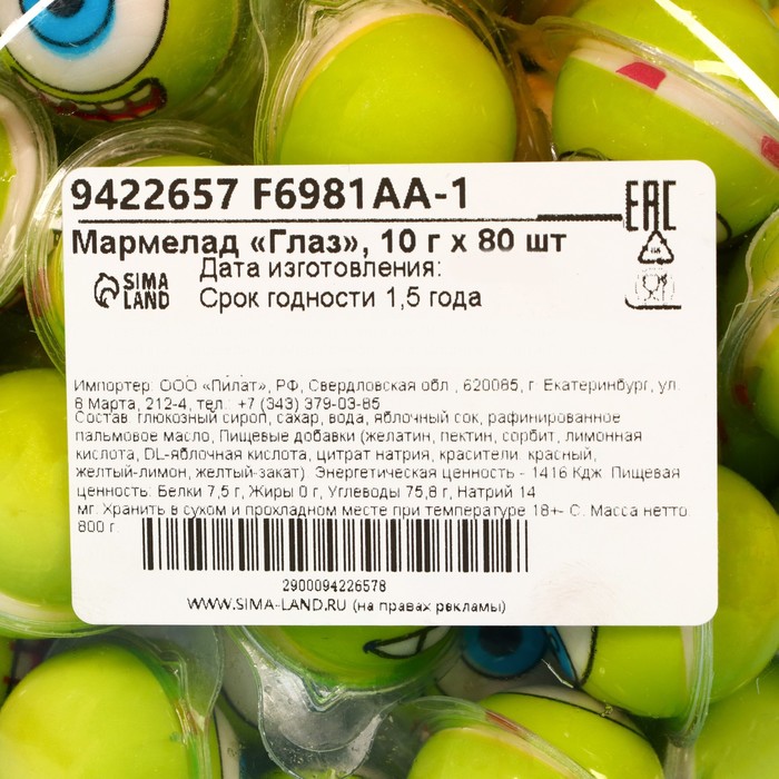 Технические характеристики Мармелад «Глаз», набор, 10 г × 50 шт.
