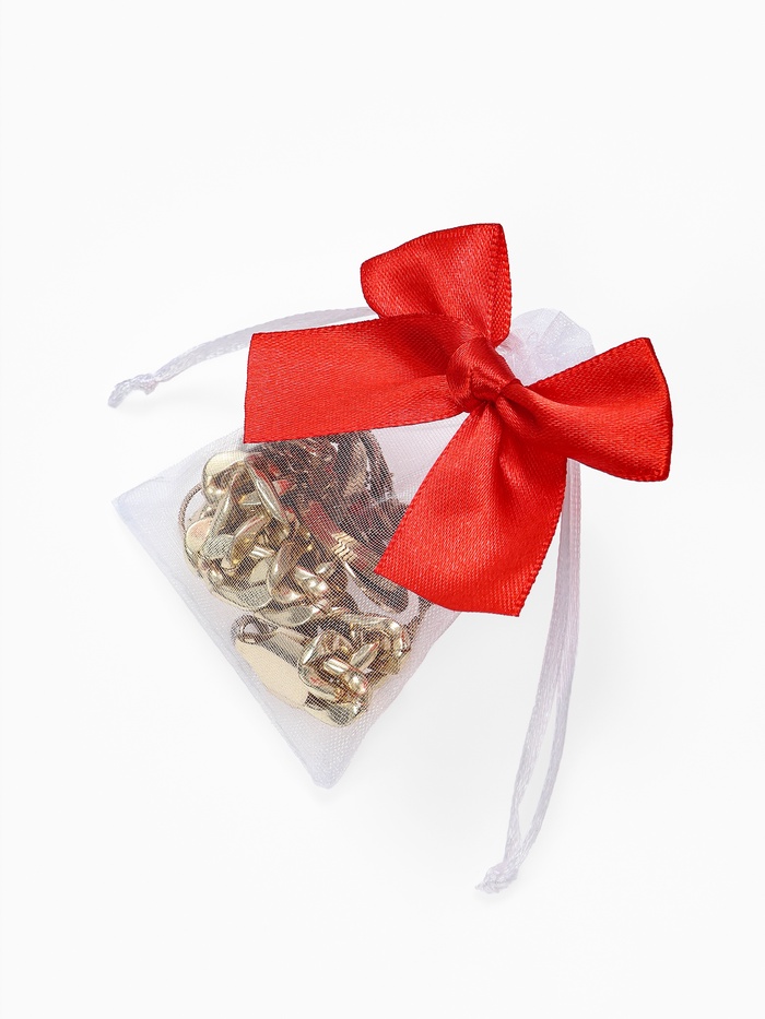 Набор мешочков подарочных 50 шт. "Бант органза", 7*9 см, цвет бело-красный (10803642)