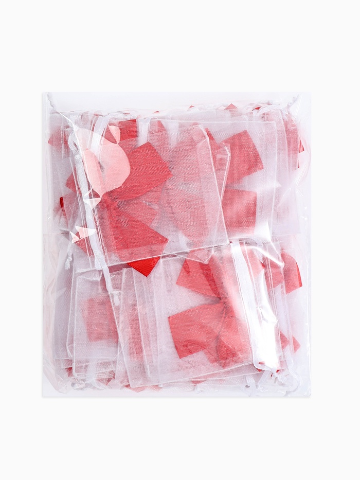 Технические характеристики Набор мешочков подарочных 50 шт. "Бант органза", 7*9 см, цвет бело-красный (10803642)