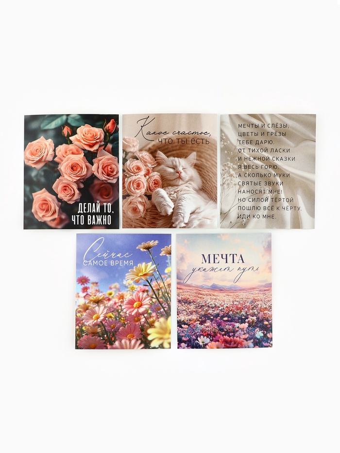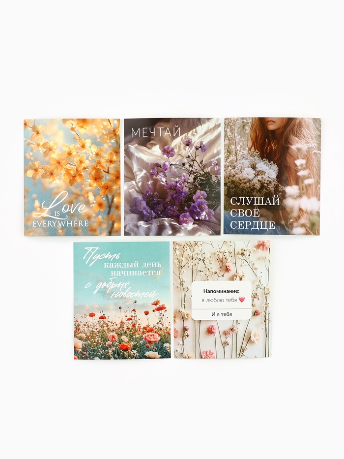 Технические характеристики Набор мини-открыток в коробке со скрепками «Цветы», 35 штук, 8 x 10 см