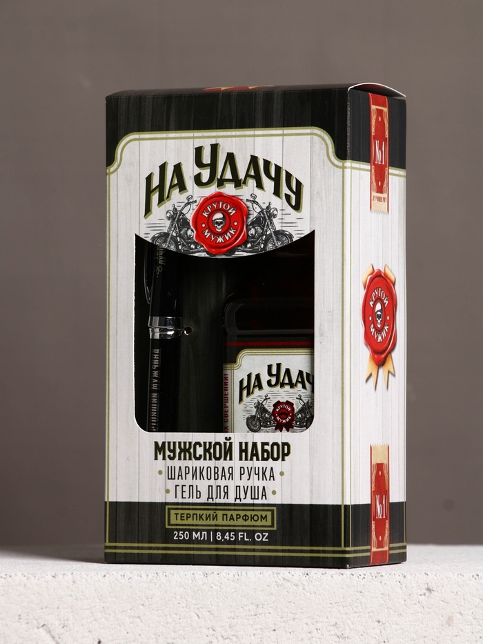 Технические характеристики Набор "На удачу", гель для душа во флаконе виски и шариковая ручка