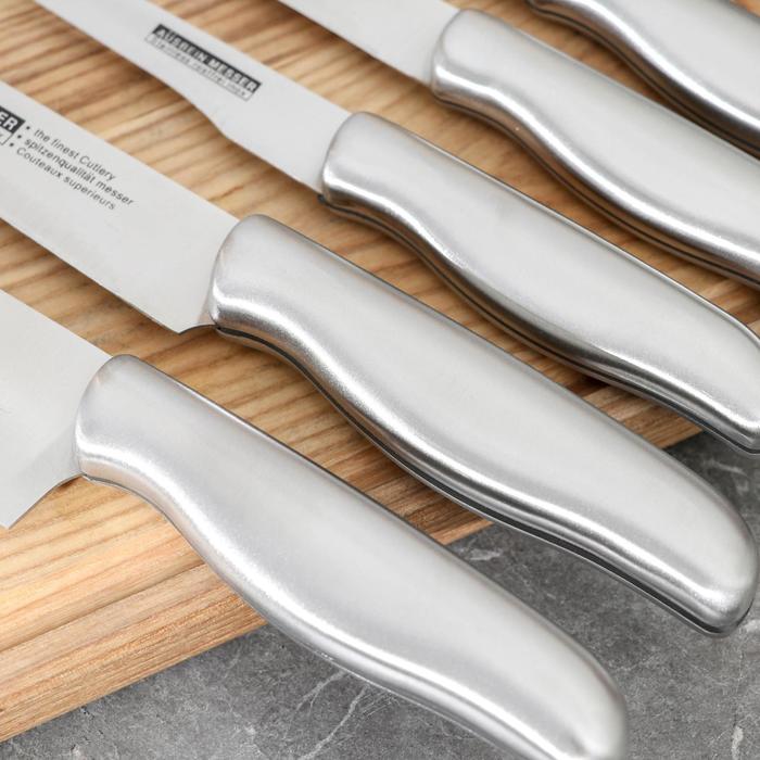 Набор ножей кухонных на подставке «Блеск стали», 6 предметов: 5 ножей лезвие 9.5 см, 13 см, 13.5 см, 20.5 см, 20.5 см, ножницы