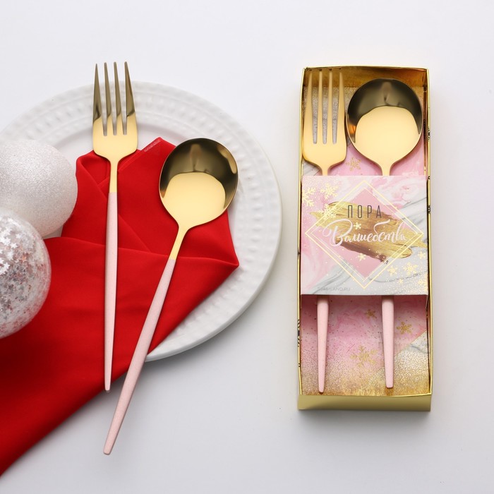 Набор новогодних столовых приборов «Новый год: Пора волшебства», нержавеющая сталь, 2 предмета