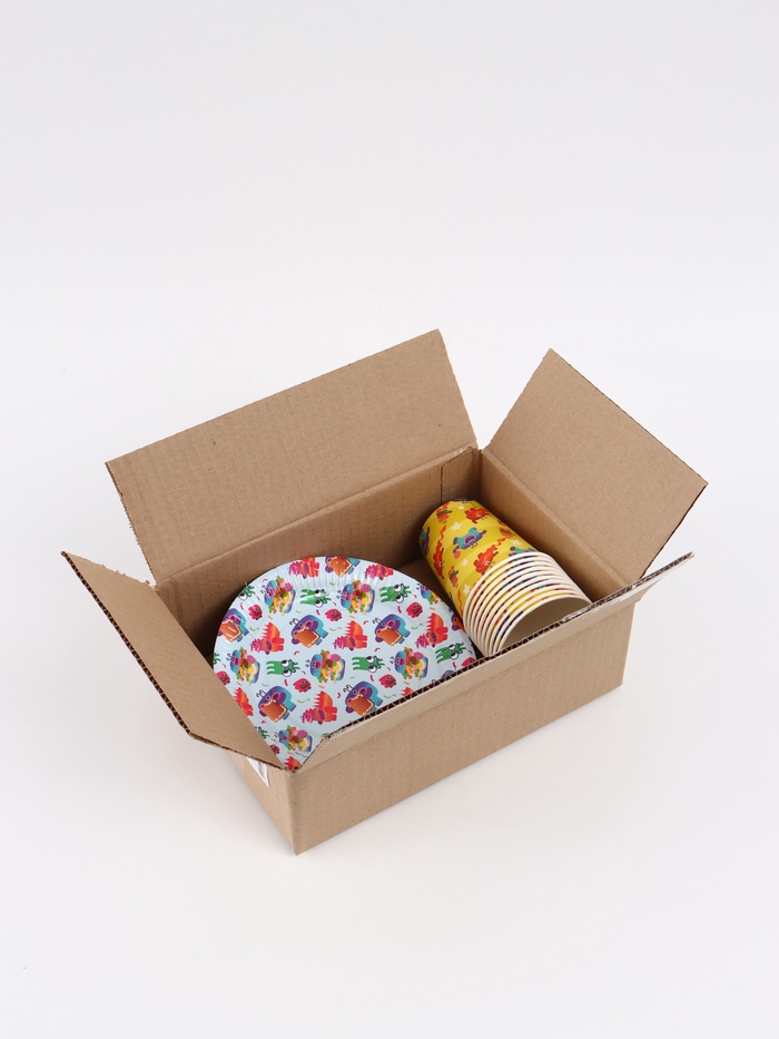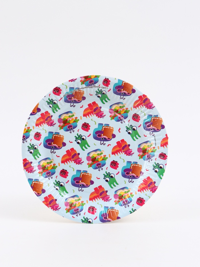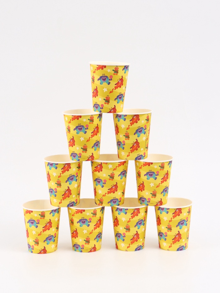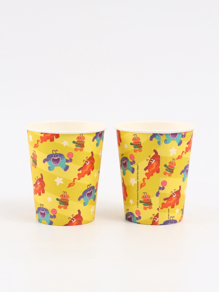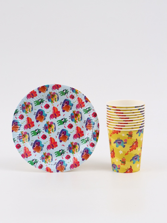 Включает: 10 стаканов и 10 тарелок. Яркий дизайн с забавными героями поднимает настроение на празднике или детском мероприятии. Изготовлен из безопасного картона — подходит для холодных и тёплых напитков и лёгких закусок. Удобно брать в гости, на пикник или в детский сад.