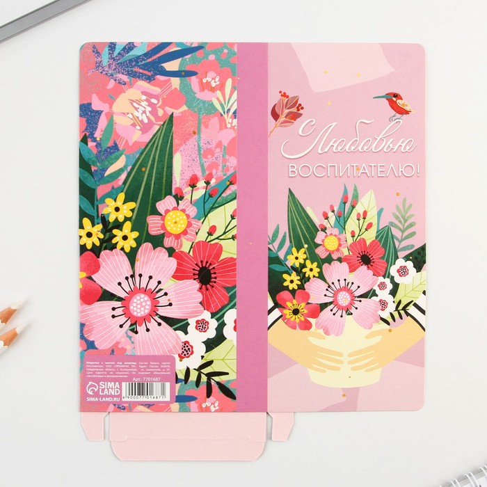 Открытки с местом под шоколадку «С любовью воспитателю!», набор 5 шт.