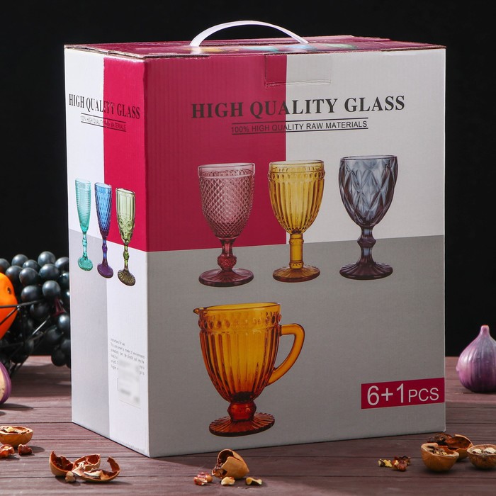 Технические характеристики Набор для напитков из стекла «Круиз», 7 предметов: кувшин 1,1 л, 6 бокалов 300 мл, цвет зелёный