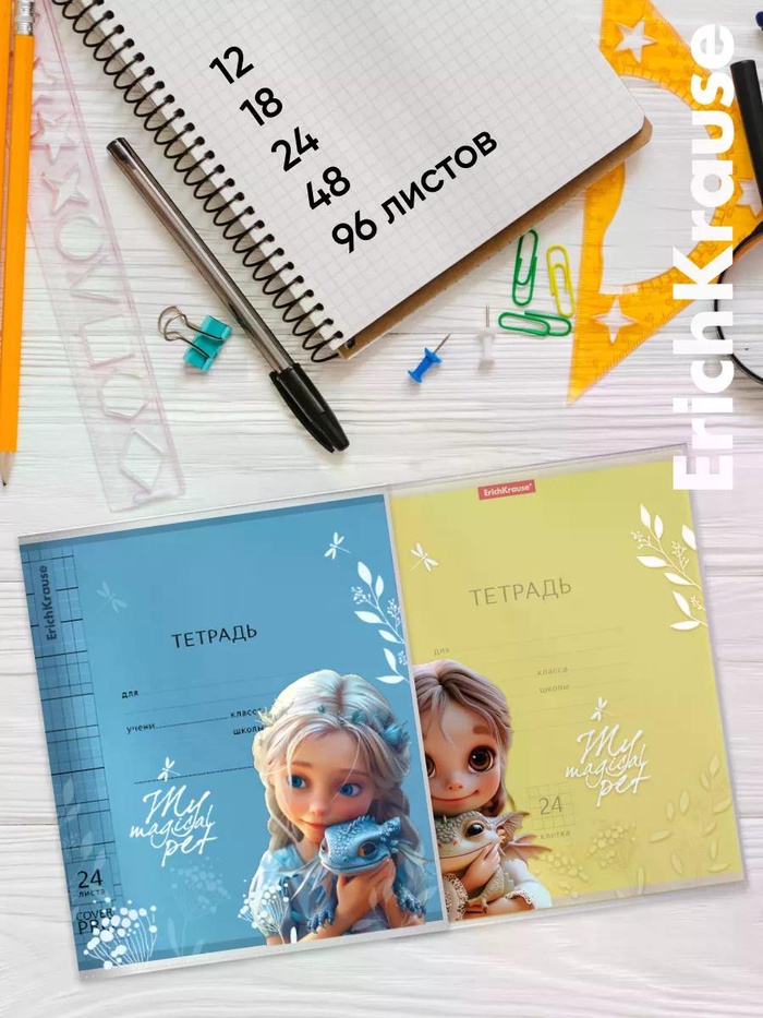 Технические характеристики Набор пластиковых обложек для тетрадей ErichKrause Magic Pet, 212×347 мм, 80 мкм, МИКС