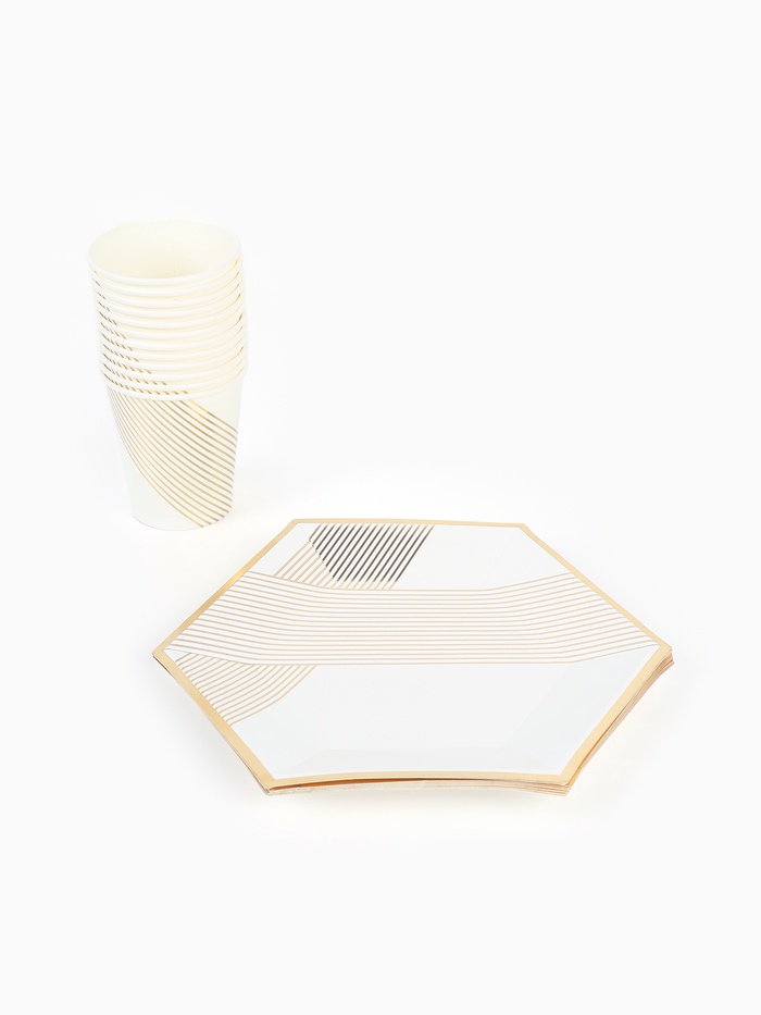 Технические характеристики Набор посуды для праздника на 12 персон, белый с золотом (тарелки 23 см, стакан 250 мл)