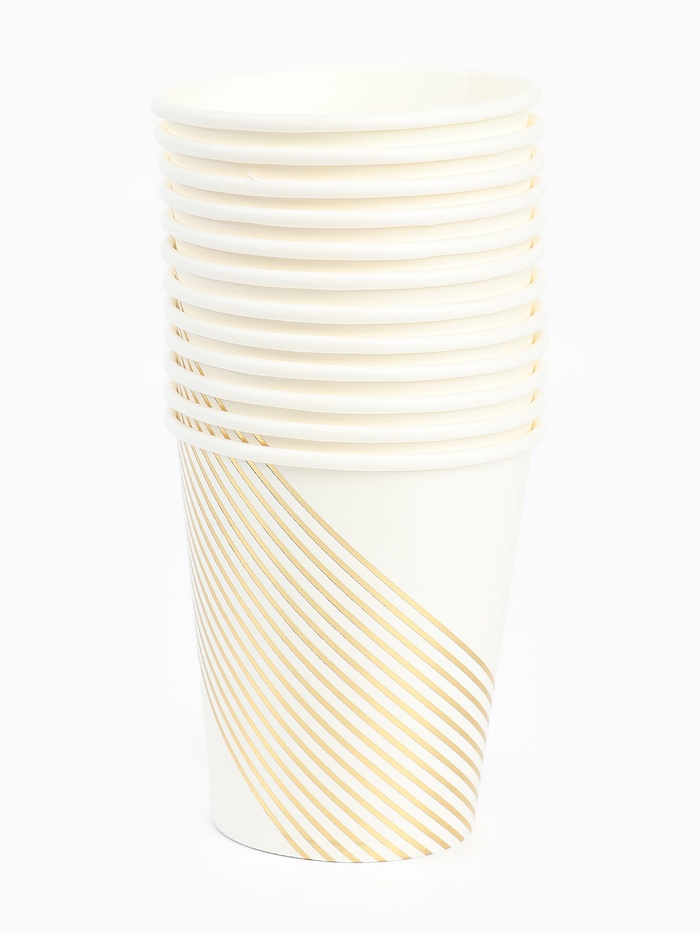 Набор посуды для праздника на 12 персон, белый с золотом (тарелки 23 см, стакан 250 мл)