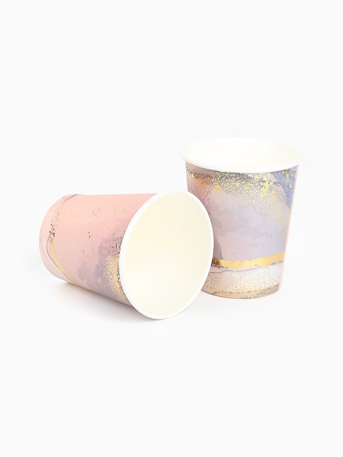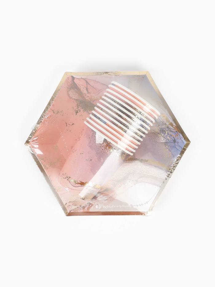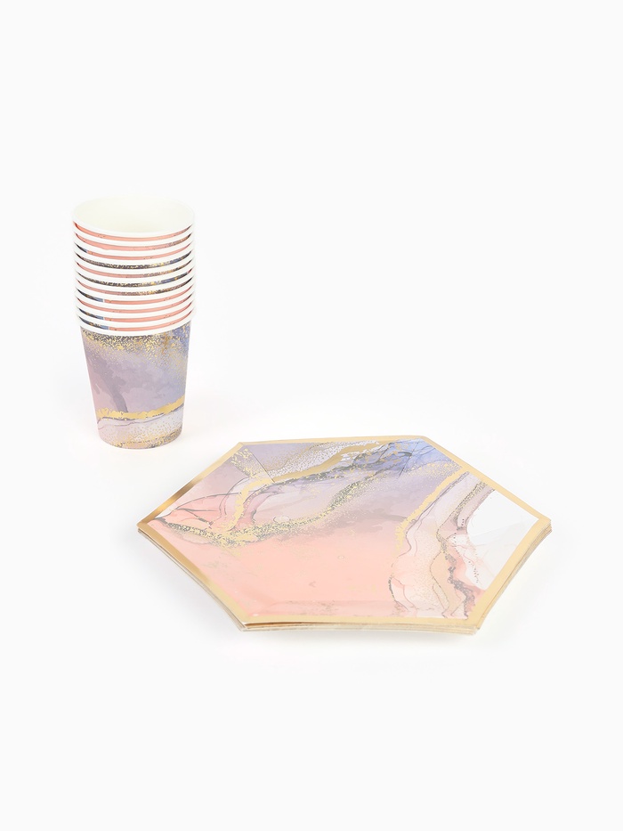 Технические характеристики Набор посуды для праздника на 12 персон, мрамор розовый (тарелки 23 см, стакан 250 мл)