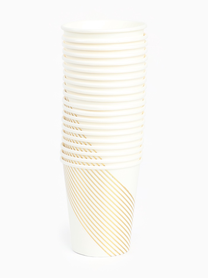 Набор посуды для праздника на 20 персон, белый с золотом (тарелки 23 см, стакан 250 мл)