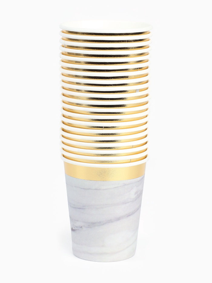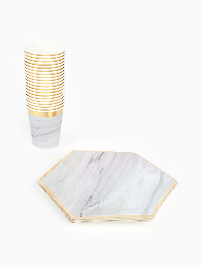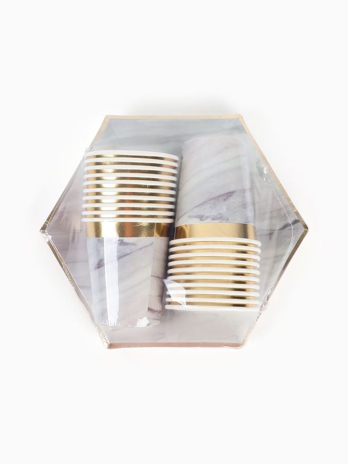 Набор посуды для праздника на 20 персон, мрамор белый (тарелки 23 см, стакан 250 мл)