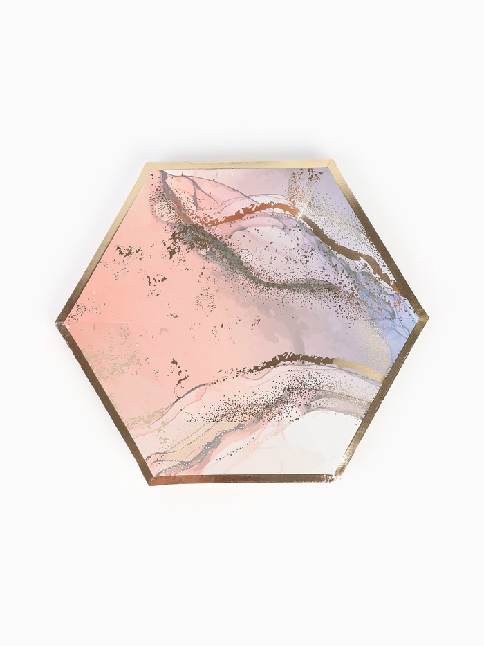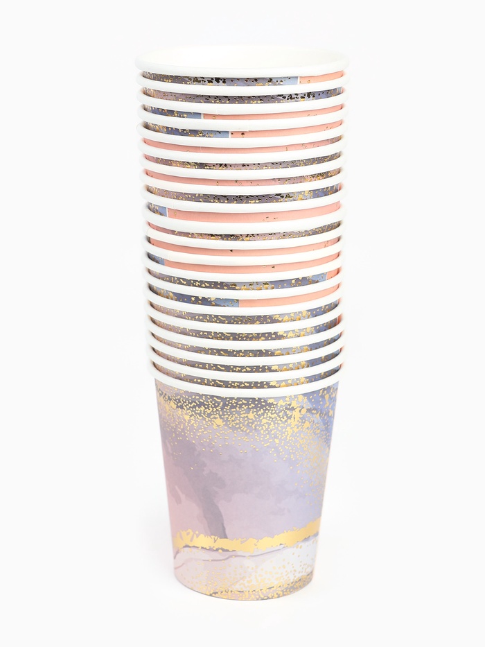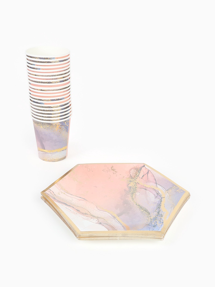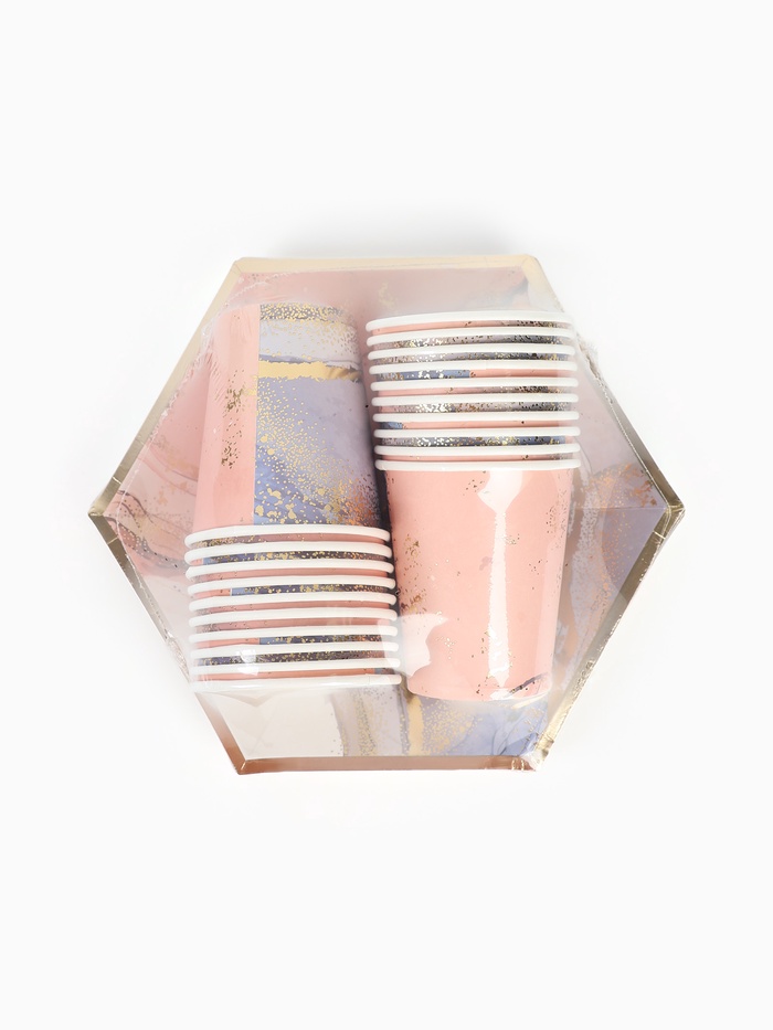 Набор посуды для праздника на 20 персон, мрамор розовый (тарелки 23 см, стакан 250 мл)