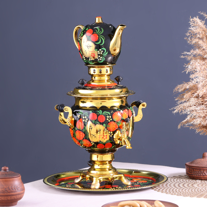 Набор посуды «Хохлома», 3 предмета: самовар 3 л, заварочный чайник 0.7 л, поднос