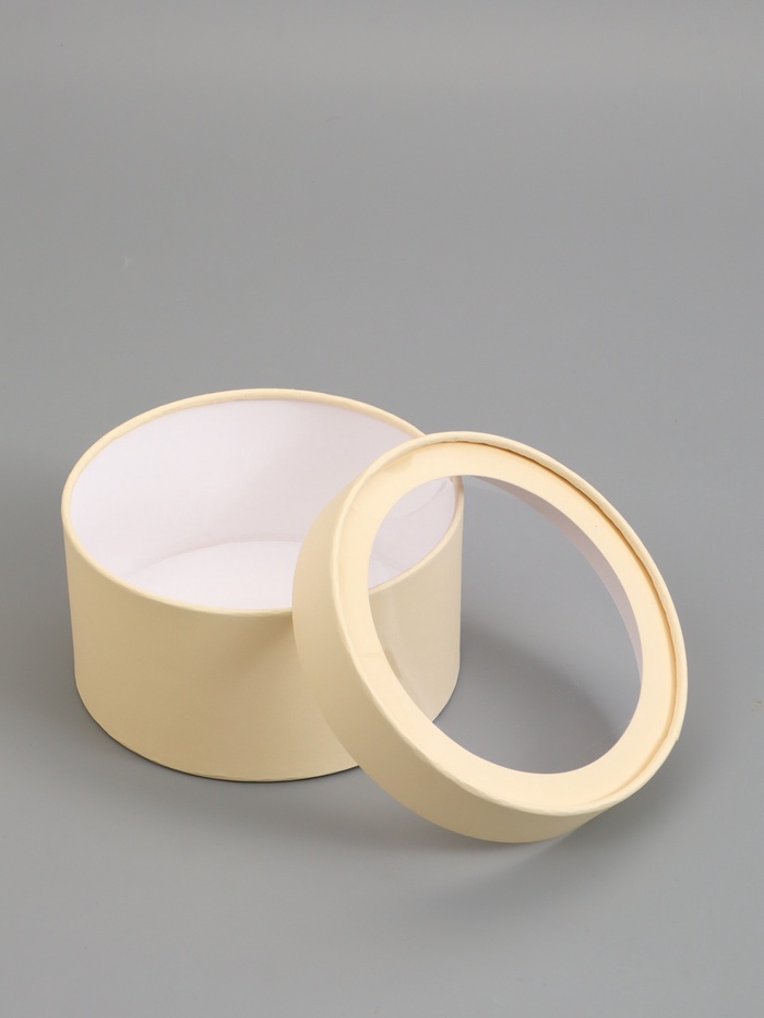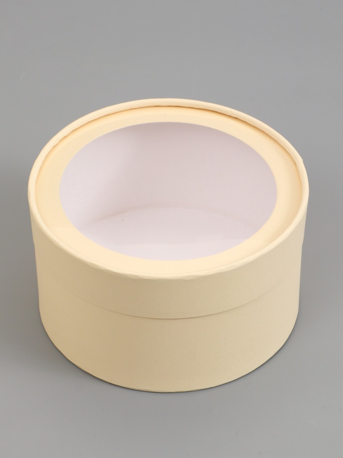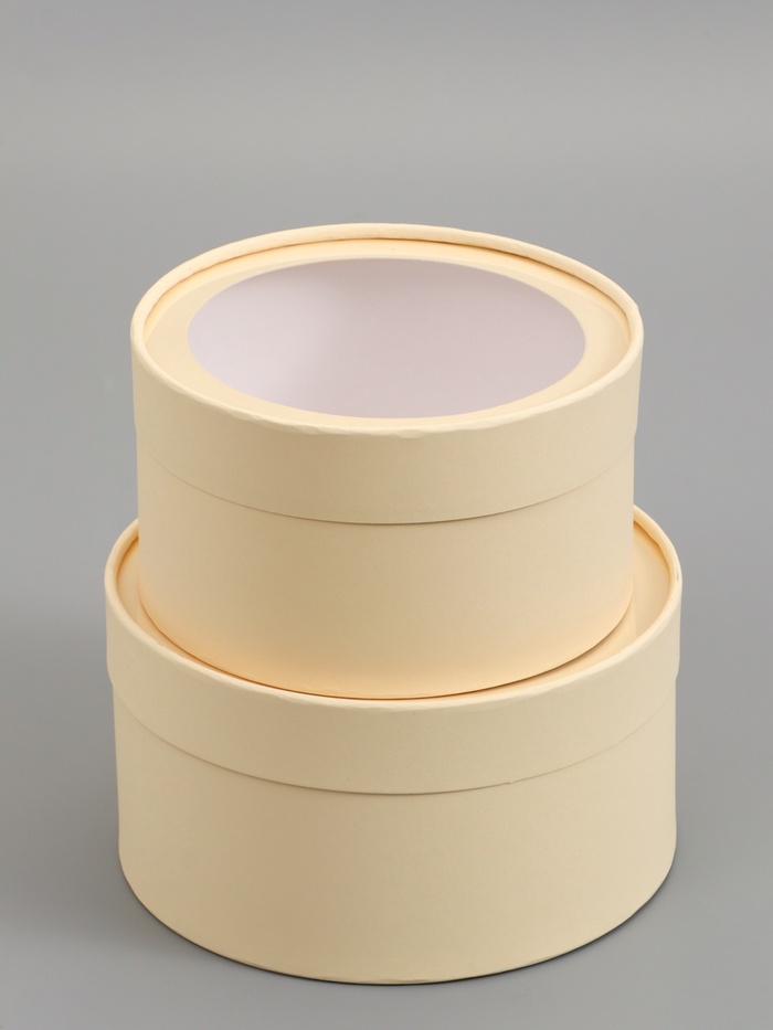 Набор подарочных коробок 2 в 1 круглых, сливочная, с окном, 21×11 - 18×10 см