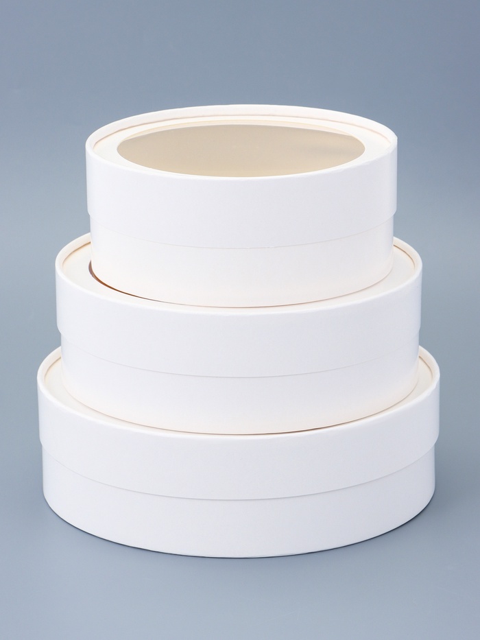 Технические характеристики Набор подарочных коробок 3 в 1 круглые с окном, завальцованные, белые, 20×18×15 см