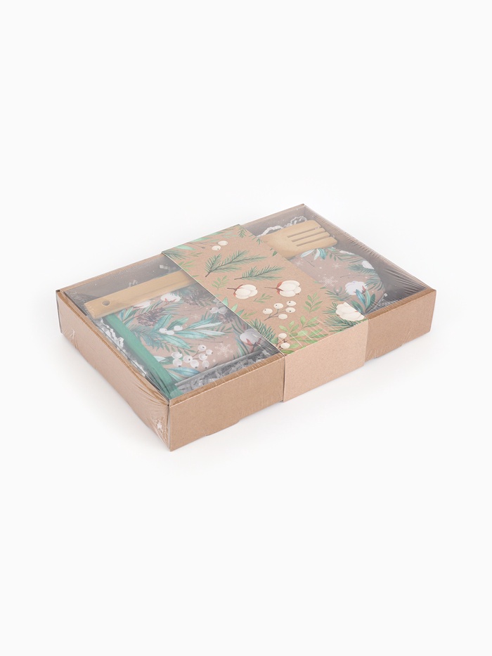 Этот комплект объединяет функциональность и праздничное настроение. Варежка-прихватка защищает руки от горячего, а деревянная лопатка бережно перемешивает блюда — вместе они превращают готовку в ритуал, наполненный ожиданием чуда. Подарите не просто вещи, а атмосферу: «своё» тепло, которое чувствуется даже в мелочах.