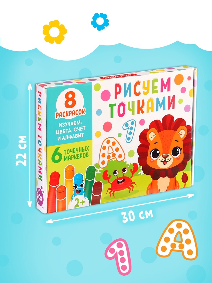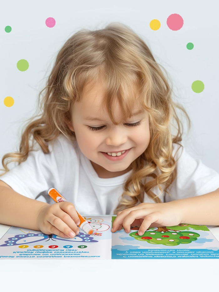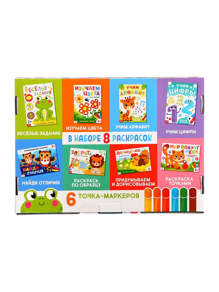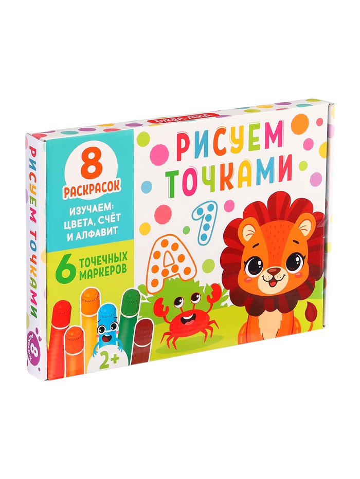 - Комплектуется 6 яркими точка-маркерами для удобного рисования.