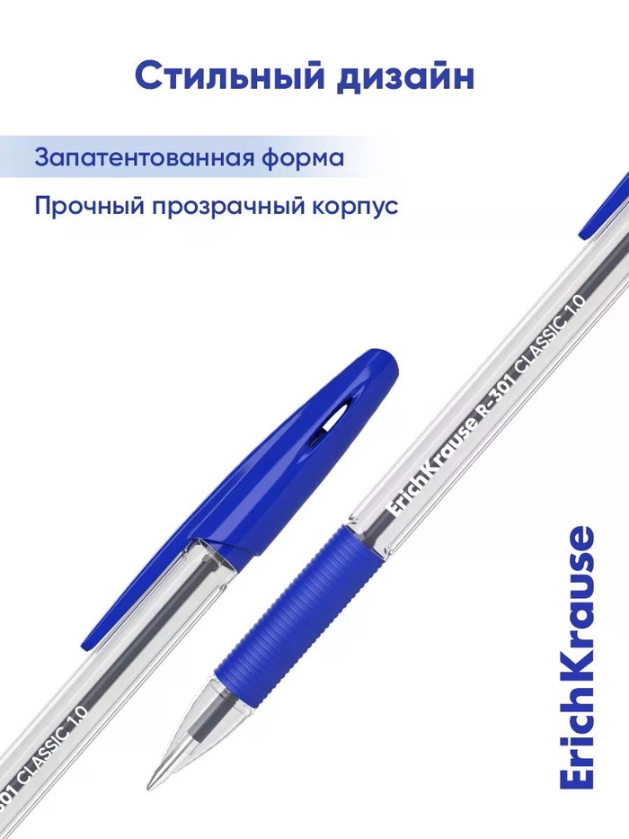 Набор ручек шариковых ErichKrause R=301 Stick Grip, 8 штук, узел 1 мм, синие чернила