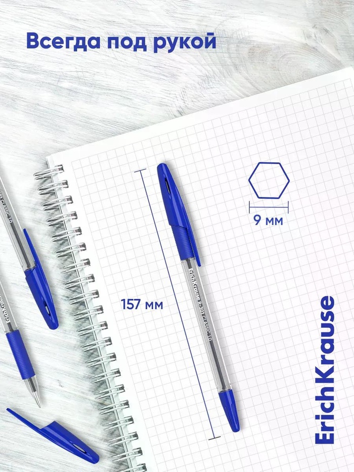 Классическая шариковая ручка Stick&Grip со стандартным типом пишущего узла и заменяемым стержнем. Ручка имеет прозрачный шестигранный корпус с удобной профилированной грип-зоной из резины и вентилируемый колпачок. Цвет колпачка, грип-зоны и заглушки соответствует цвету чернил. 5-канальный пишущий узел с диаметром шарика 1.0 мм в сочетании с быстросохнущими чернилами обеспечивает мягкое и комфортное письмо. Длина непрерывной линии составляет 2000 м при толщине 0.5 мм.