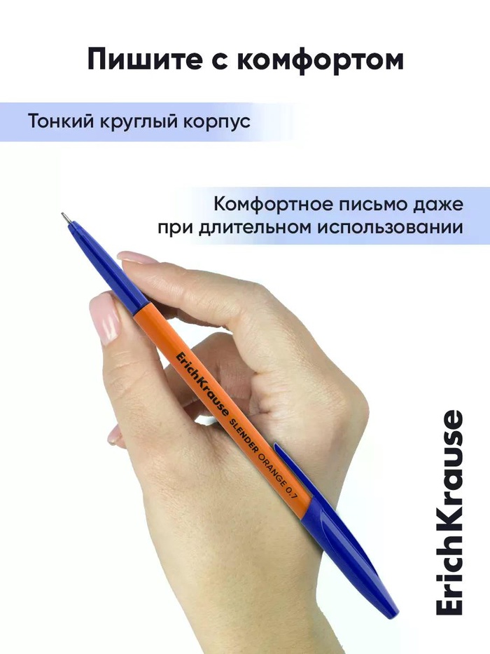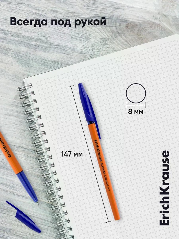 Набор ручек шариковых ErichKrause Slender Stick Orange, Super Glide, 8 штук, узел 0.7 мм, синие чернила