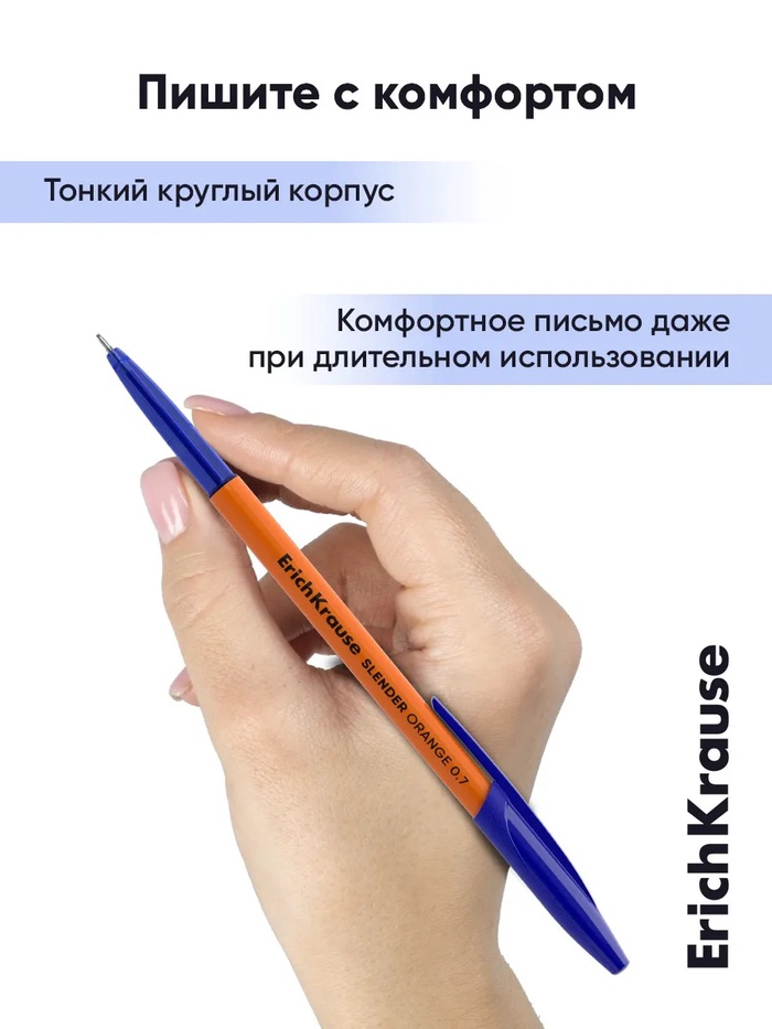 Набор ручек шариковых ErichKrause Slender Stick Orange, SuperGlide, 4 штуки, узел 0.7 мм, синий