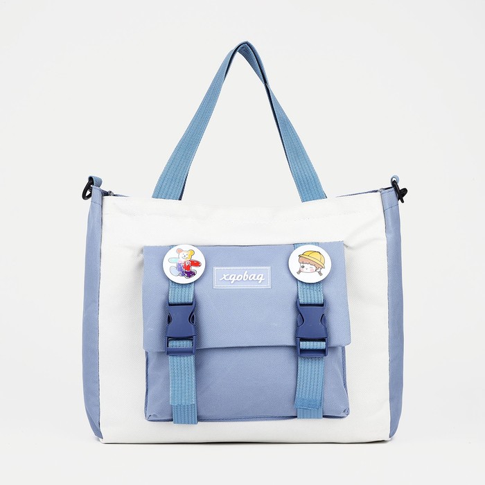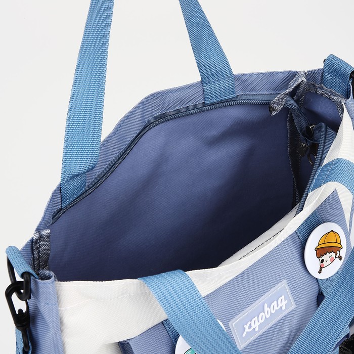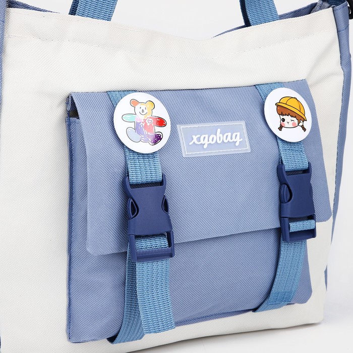 Набор рюкзак школьный на молнии из текстиля, шопер, сумка, косметичка, пенал синий