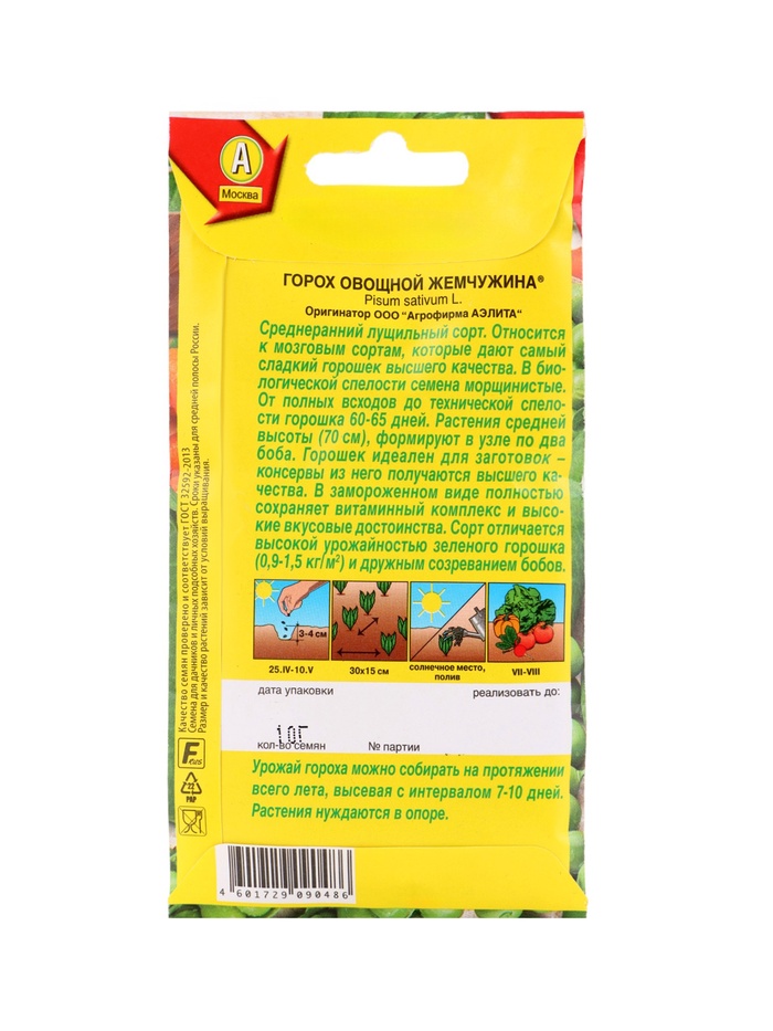 Технические характеристики Набор семян Горох, 3 пакетика, «Аэлита»