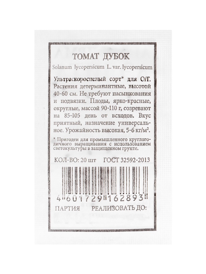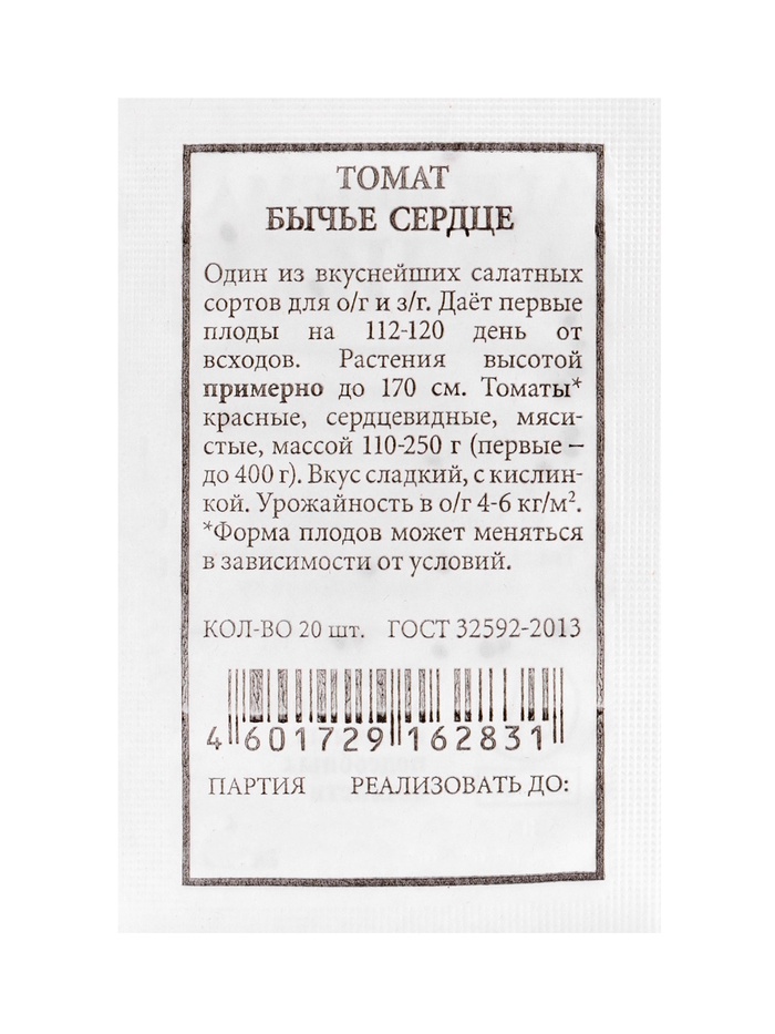 Технические характеристики Набор семян Томаты низкорослые для открытого грунта и теплиц «Бычье сердце»