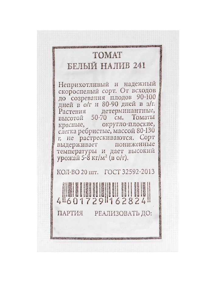 | Материалы из которых произведен товарСемена | Минимальная партия1 | Объем бокса1.275 |
