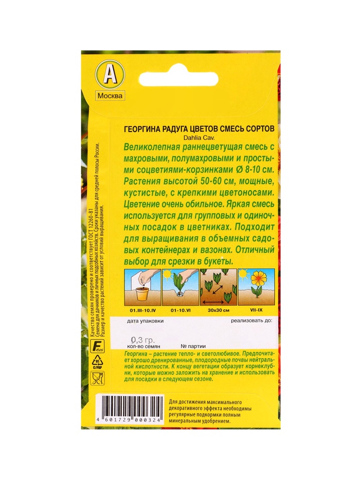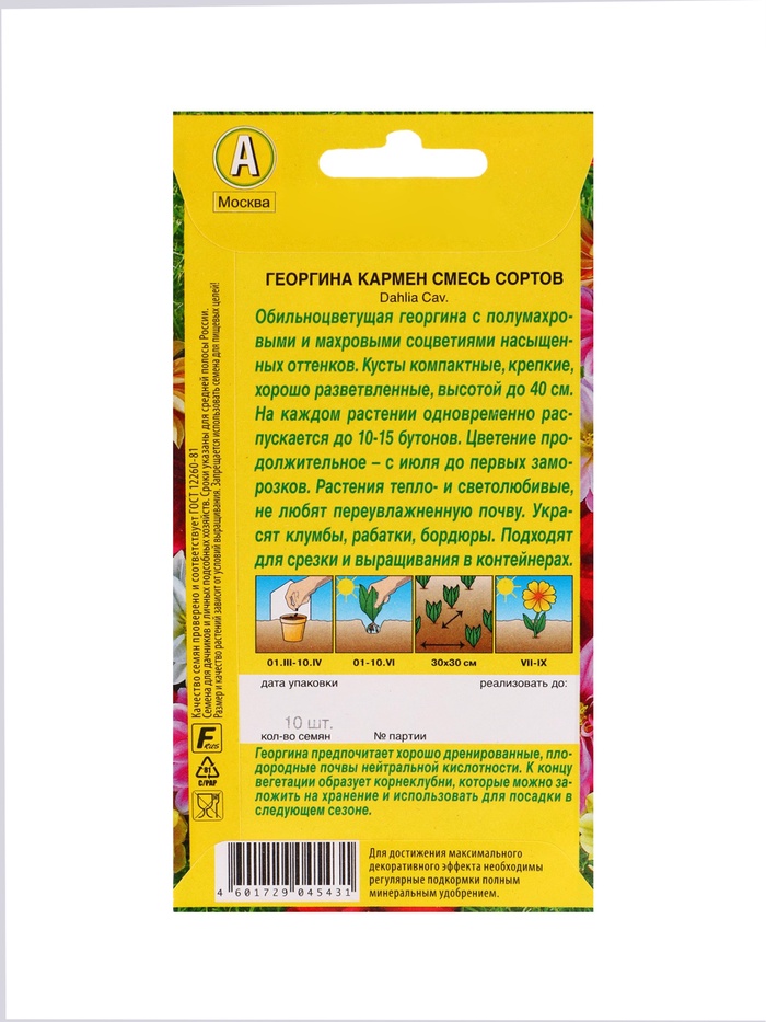 Технические характеристики Набор Семена цветов Георгины махровая низкорослая (238760048) ВБ