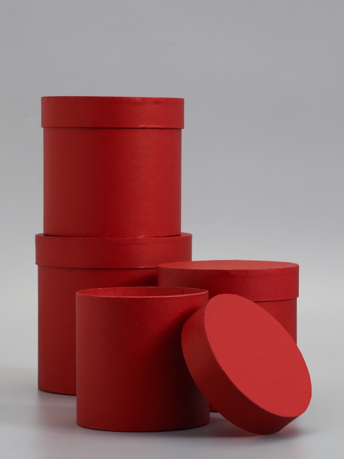 Классическая элегантность в четырёх размерах. Набор шляпных коробок «Вишнёвый» 4 в 1, 18×18 – 14×14 см – это комплект из четырёх цилиндрических коробок насыщенного вишнёво-бордового цвета. Плотный картон 900 г/м² и благородный оттенок делают набор идеальным для упаковки подарков к 14 Февраля, 8 Марта и другим романтичным праздникам.