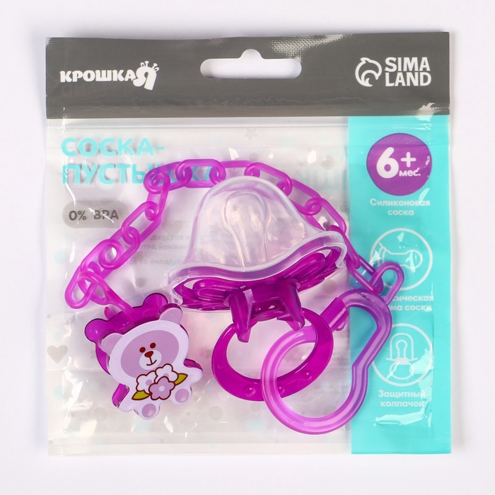 Технические характеристики Соска - пустышка с держателем «Бабочка», SL, КЛ +6 мес., с колпачком, фиолетовая