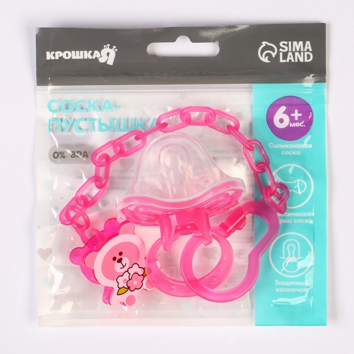 Технические характеристики Соска - пустышка с держателем «Бабочка», SL, КЛ +6 мес., с колпачком, розовая